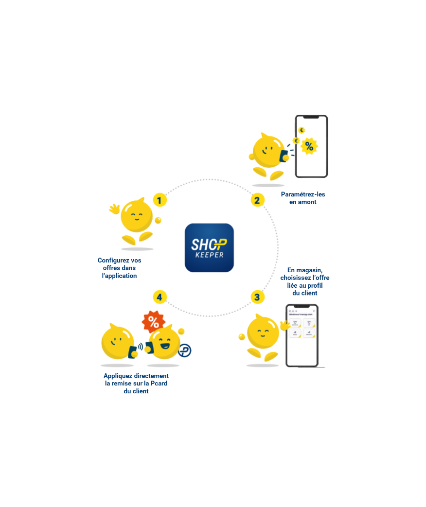 Avec ShopKeeper, vous offrez en quelques secondes une réduction ou un crédit de stationnement, directement sur la Pcard de vos clients.